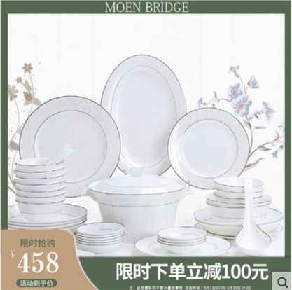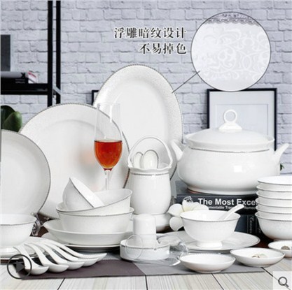 碗碟套装 家用中式景德镇骨瓷餐具 碗盘欧式简约碗筷盘子餐具套装