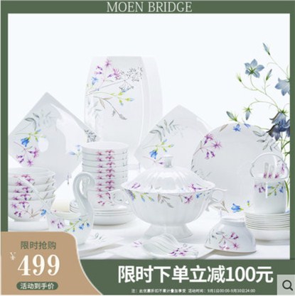 碗碟套装 家用中式景德镇骨瓷餐具 碗盘欧式简约陶瓷碗筷盘子组合