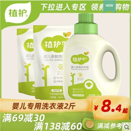 植护婴儿洗衣液2斤体验装新生宝宝儿童专用袋装瓶装组合整箱