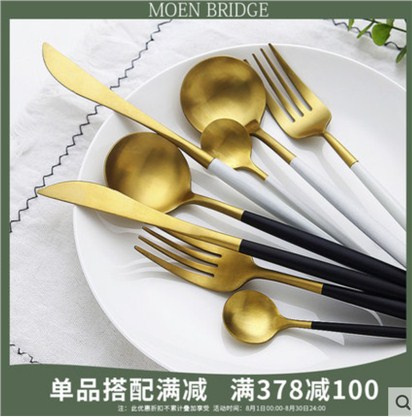304不锈钢牛排刀叉盘子套餐西餐餐具全套网红刀叉勺四件套家用